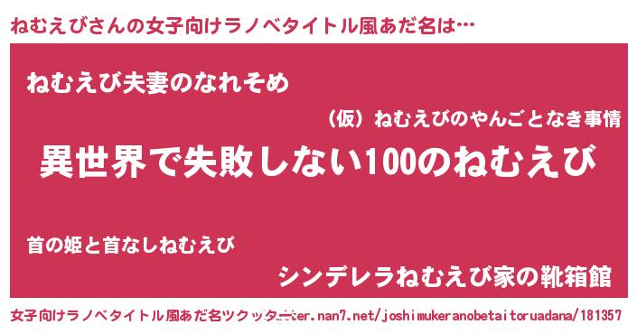 | 意味不明あだ名 | 『永久保存ねむえび』『ペロリンねむえび』 |