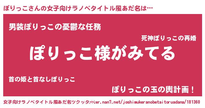 | 男性向けラノベタイトル風あだ名 | 『ぽりっこの嫁は女の子じゃないと思った?』 |