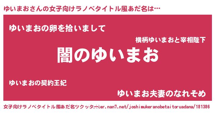 | 男性向けラノベタイトル風あだ名 | 『Re:ゆいまおから始める異世界生活』 |