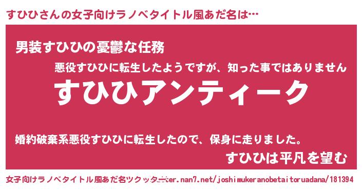 | 男性向けラノベタイトル風あだ名 | 『魔法科高校のすひひ』 |