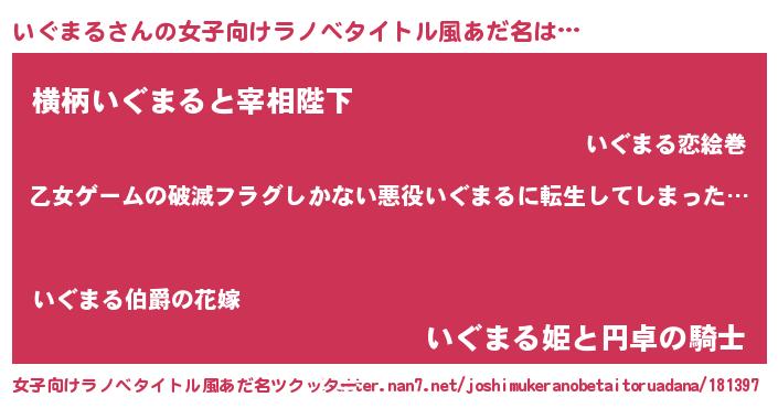 | 意味不明あだ名 | 『住所不定無職いぐまる(7歳)』 |