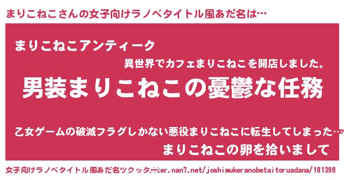 | 男性向けラノベタイトル風あだ名 | 『うちのまりこねこが世界を掌握している!』 |
