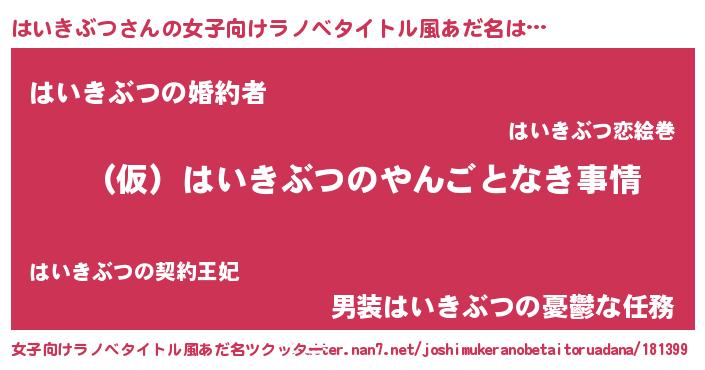 | 男性向けラノベタイトル風あだ名 | 『はいきぶつの憂鬱』 |