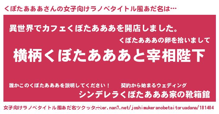 | 男性向けラノベタイトル風あだ名 | 『くぼたあああに滅ぼされるだけの簡単なお仕事です』 |