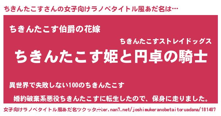 | 胡散臭い通販商品みたいなあだ名 | 『モテモテ間違いなしブレスレット…その名も「ちきんたこす」』 |