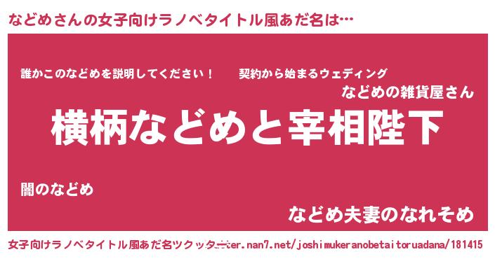 | ヒーロー風カッコイイあだ名 | 『スーパーナドメ』『天空の使者などめ』 |