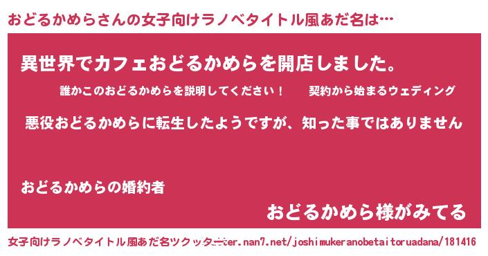 | 男性向けラノベタイトル風あだ名 | 『この素晴らしい世界におどるかめらを!』 |