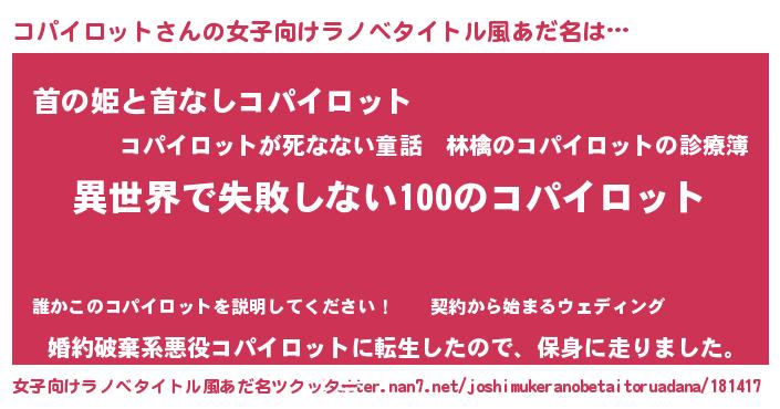 | 胡散臭い通販商品みたいなあだ名 | 『絶対に幸福をもたらす水素水…その名も「コパイロット」』 |