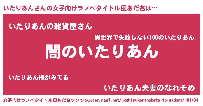 | 意味不明あだ名 | 『自称いたりあん』『永久保存いたりあん』 |