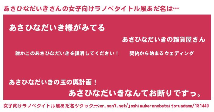 | 胡散臭い通販商品みたいなあだ名 | 『億万長者になれる水晶球…その名も「あさひなだいき」』 |
