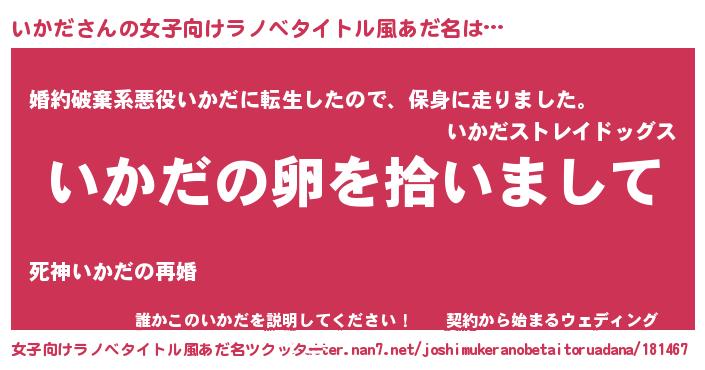 | 男性向けラノベタイトル風あだ名 | 『いかだの嫁は女の子じゃないと思った?』 |