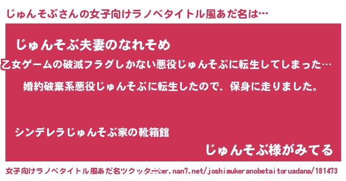 | 男性向けラノベタイトル風あだ名 | 『ジュンソブスレイヤー』 |