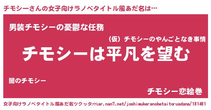 | 男性向けラノベタイトル風あだ名 | 『ダンジョンにチモシーを求めるのは間違っているだろうか』 |