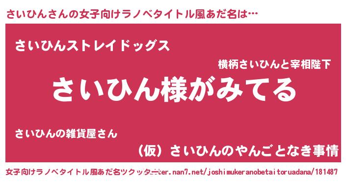 | 恥ずかしいあだ名 | 『サイリンリン』『サイヒンデラックス』 |