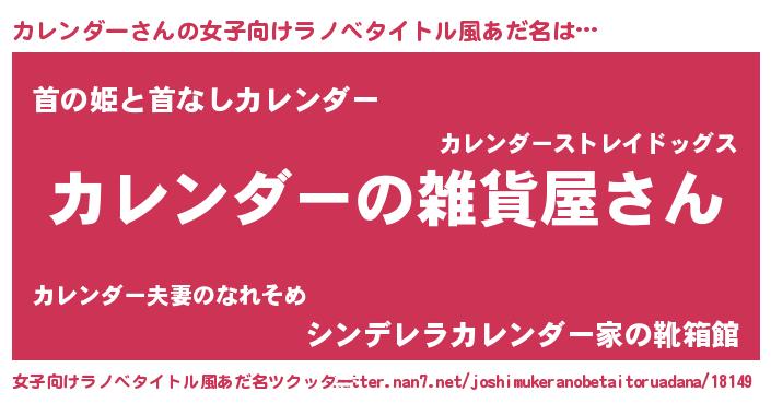 | 男性向けラノベタイトル風あだ名 | 『やはりカレンダーの青春ラブコメはまちがっている 』 |