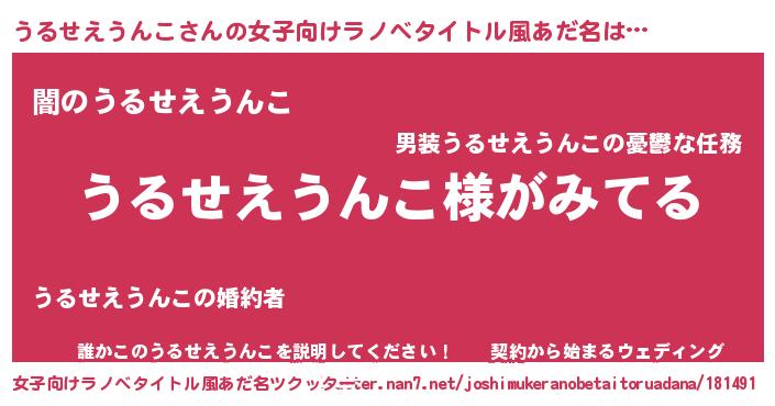 | 男性向けラノベタイトル風あだ名 | 『うるせえうんこの嫁は女の子じゃないと思った?』 |