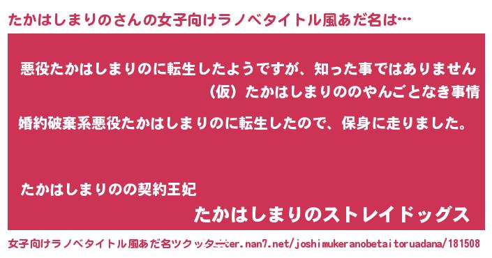 | 胡散臭い通販商品みたいなあだ名 | 『ハリウッド女優が絶賛した100年もののヴィンテージワイン…その名も「たかはしまりの」』 |