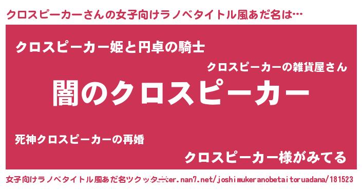 | 胡散臭い通販商品みたいなあだ名 | 『テレビで話題の高麗人参…その名も「クロスピーカー」』 |