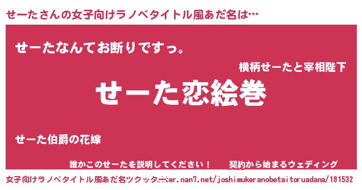 | 肩書あだ名 | 『せーた助手』『せーた閣下』 |