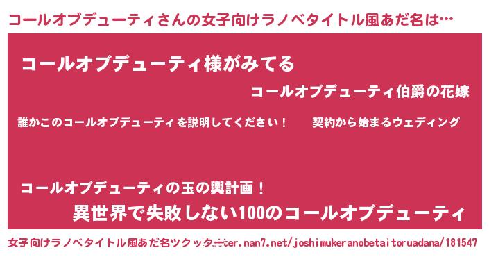 | 胡散臭い通販商品みたいなあだ名 | 『億万長者になれるブレスレット…その名も「コールオブデューティ」』 |