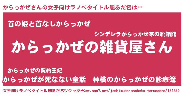 | 胡散臭い通販商品みたいなあだ名 | 『幸せが訪れる高級そうな壺…その名も「からっかぜ」』 |