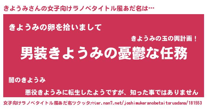 | 男性向けラノベタイトル風あだ名 | 『うちのきようみが世界を掌握している!』 |
