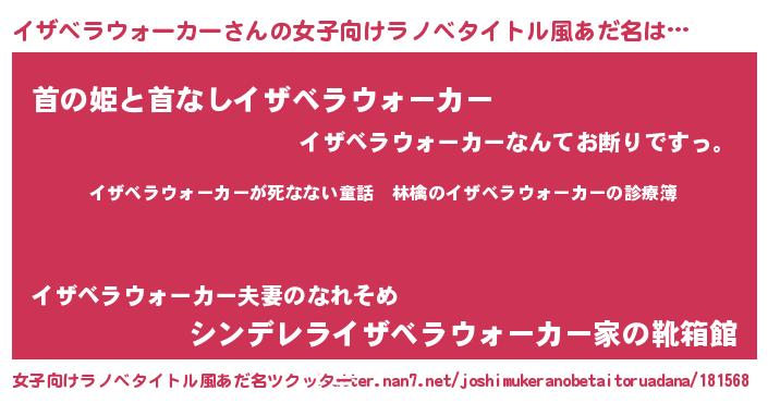 | 男性向けラノベタイトル風あだ名 | 『魔弾の王とイザベラウォーカー』 |