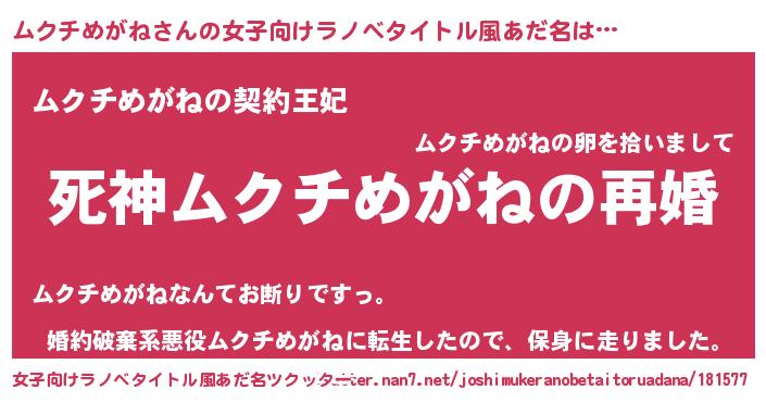 | 男性向けラノベタイトル風あだ名 | 『ノーゲーム・ノームクチメガネ』 |