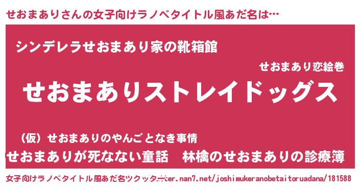 | 男性向けラノベタイトル風あだ名 | 『Re:せおまありから始める異世界生活』 |