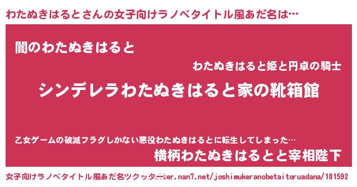 | 胡散臭い通販商品みたいなあだ名 | 『テレビで話題の高麗人参…その名も「わたぬきはると」』 |