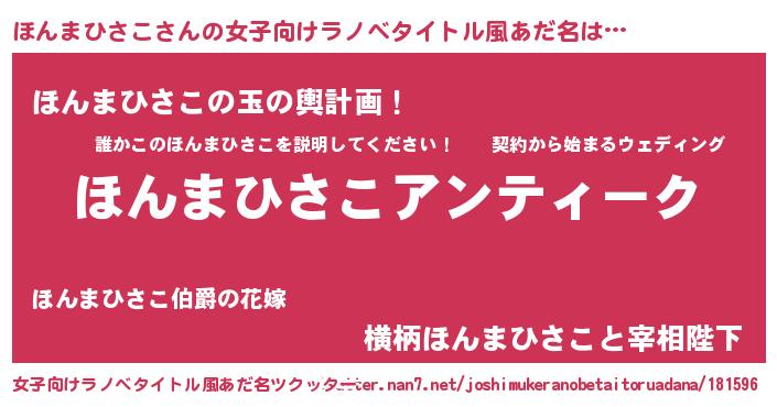 | 男性向けラノベタイトル風あだ名 | 『魔法科高校のほんまひさこ』 |