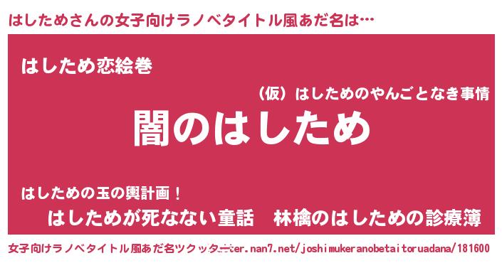 | 男性向けラノベタイトル風あだ名 | 『Re:はしためから始める異世界生活』 |