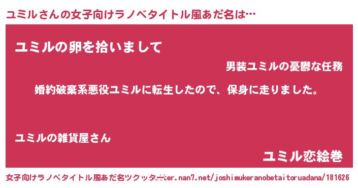 | ファンタジー風あだ名 | 『ユリユミヴァット』『ファントムユミス』 |