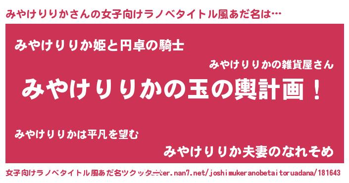 | 男性向けラノベタイトル風あだ名 | 『転生したらみやけりりかだった件』 |