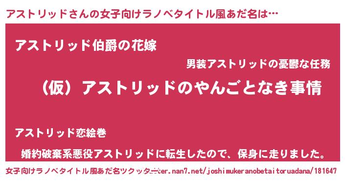 | 男性向けラノベタイトル風あだ名 | 『アストリッドの憂鬱』 |