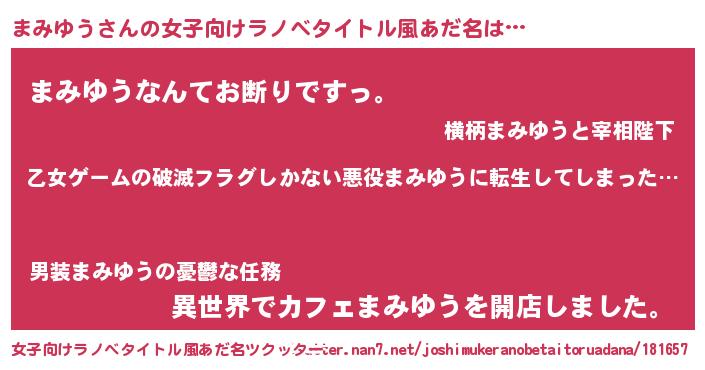 | 胡散臭い通販商品みたいなあだ名 | 『世界中を虜にした100年もののヴィンテージワイン…その名も「まみゆう」』 |