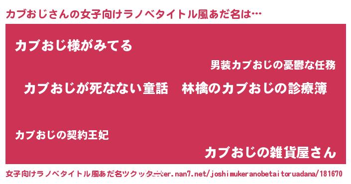 | 意味不明あだ名 | 『住所不定無職カブおじ(93歳)』 |