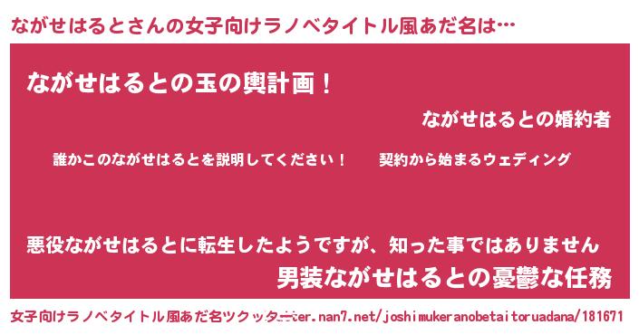 | 男性向けラノベタイトル風あだ名 | 『ナガセハルトアートオンライン』 |