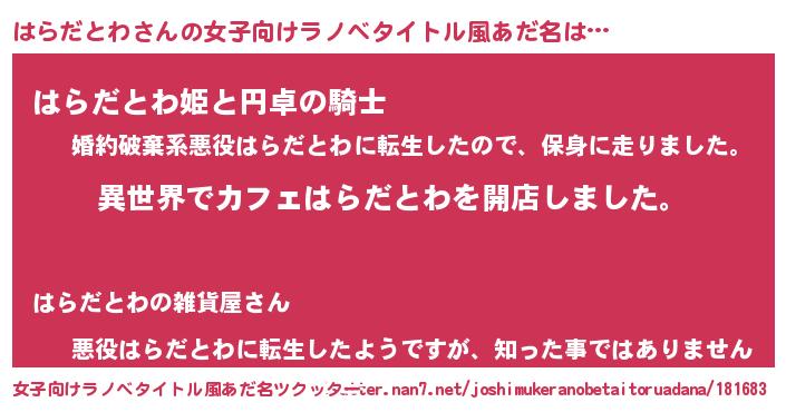 | 意味不明あだ名 | 『永久保存はらだとわ』 |