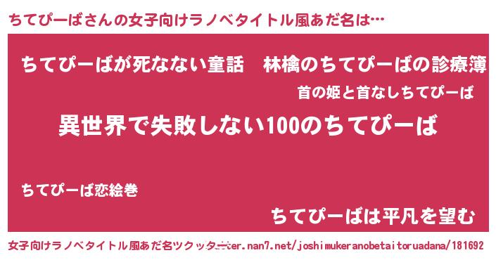| 男性向けラノベタイトル風あだ名 | 『ちてぴーばという概念が存在しない退屈な世界 』 |