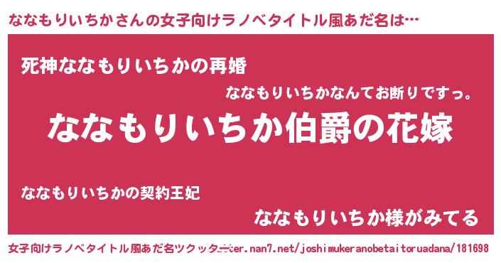 | 男性向けラノベタイトル風あだ名 | 『やはりななもりいちかの青春ラブコメはまちがっている 』 |