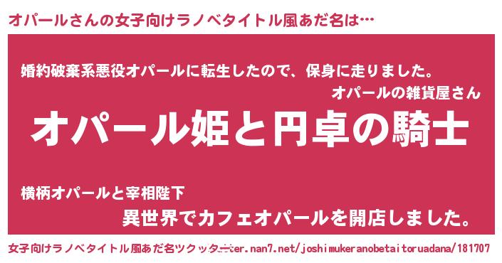 | 男性向けラノベタイトル風あだ名 | 『オパールアートオンライン』 |