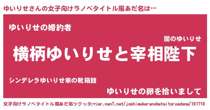 | ファンタジー風あだ名 | 『エターナルユイリセー』『ゼユイトゥ』 |