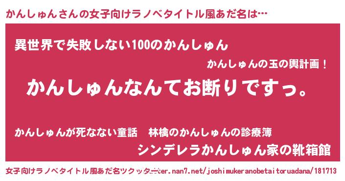 | ヘコむあだ名 | 『かんしゅん(苦笑)』『かんにー』 |