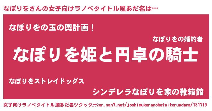 | 男性向けラノベタイトル風あだ名 | 『なぽりをの憂鬱』『緋弾のナポリヲ』 |
