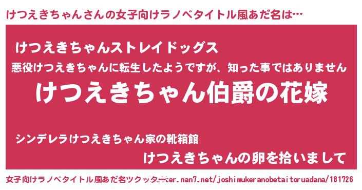 | 男性向けラノベタイトル風あだ名 | 『やはりけつえきちゃんの青春ラブコメはまちがっている 』 |