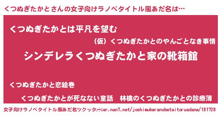 | 胡散臭い通販商品みたいなあだ名 | 『信頼と実績のネックレス…その名も「くつぬぎたかと」』 |