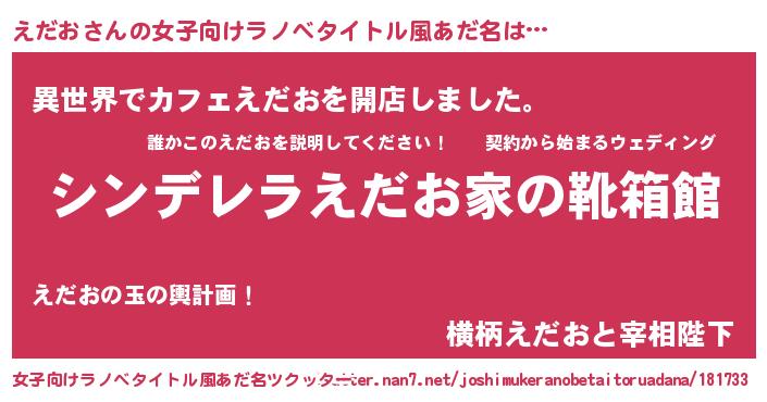 | 胡散臭い通販商品みたいなあだ名 | 『来世でも幸せになれる水素水…その名も「えだお」』 |