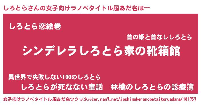 | ヘコむあだ名 | 『しろとら(笑)』『しろにゅー』 |