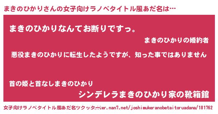 | 男性向けラノベタイトル風あだ名 | 『この素晴らしい世界にまきのひかりを!』 |